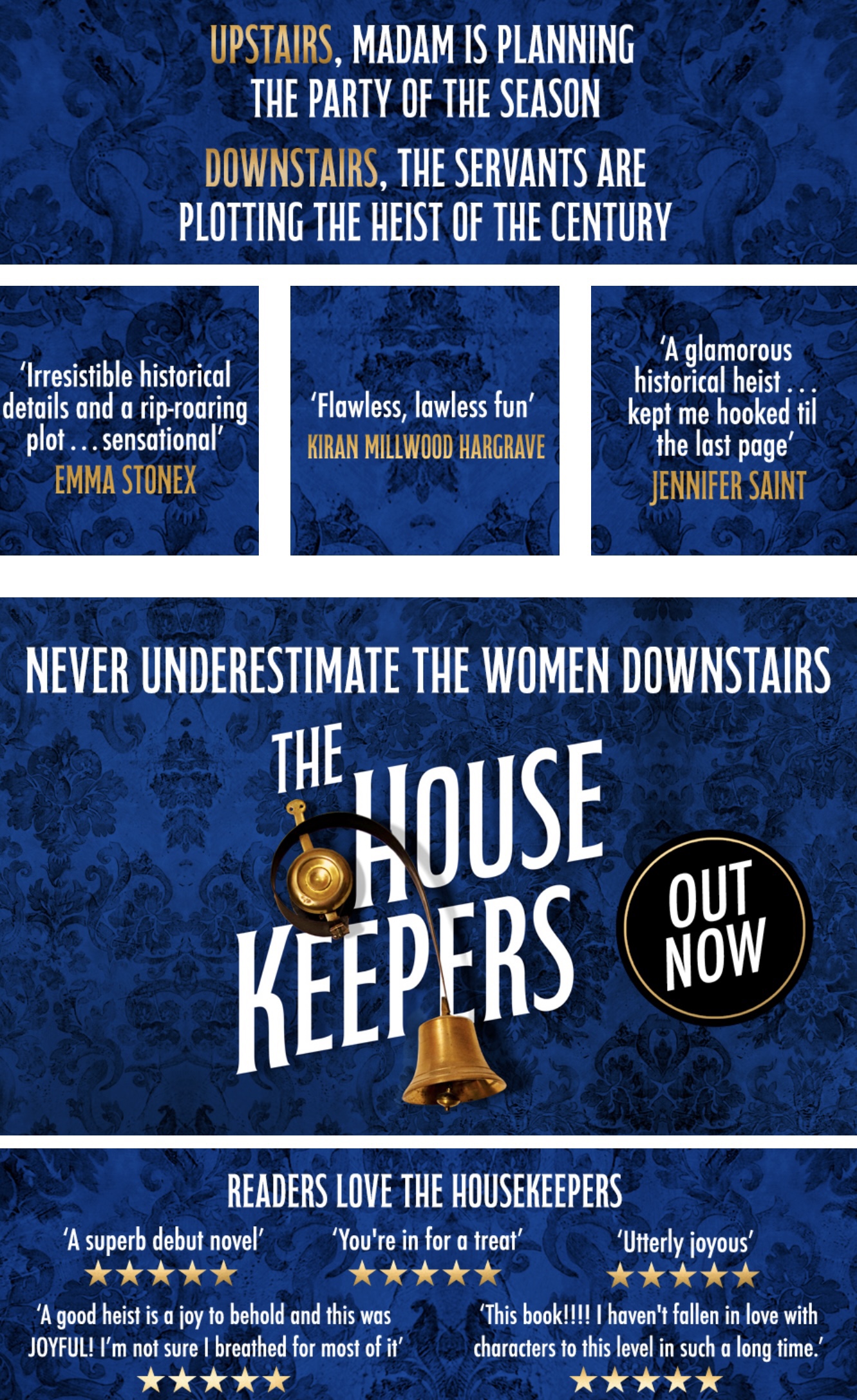 When recently dismissed Mrs King sets her mind on taking everything out of the grand Park Lane house where she was employed, she needs allies to bring this heist to a successful conclusion. She brings together a whole team of colourful characters who all have their own reasons to join her in the project. What a heist it finally is ! And how the story unfolds! I would not say that it was a page turner, but certainly a very good story. The novel has a historical background, and is very nicely written with a mix of humour and darkness.